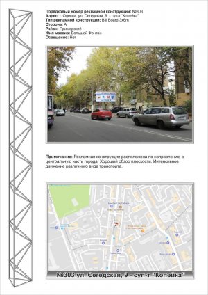 Билборд A в Одессе, 3х6 №303 ул.Сегедская ,9 - в центр