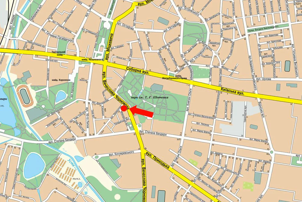 Адрес Бандери вул., міст, в центр
