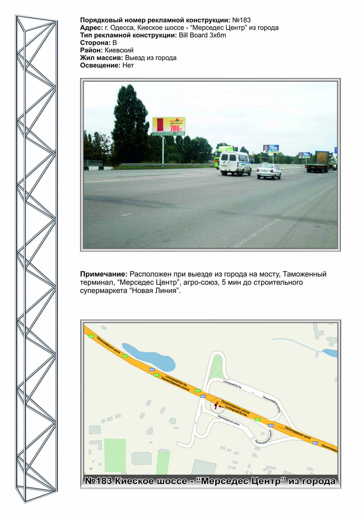 Білборд, Бігборд (Борд) B у Одесі, 3х6 №183 Київське шосе Митний термінал