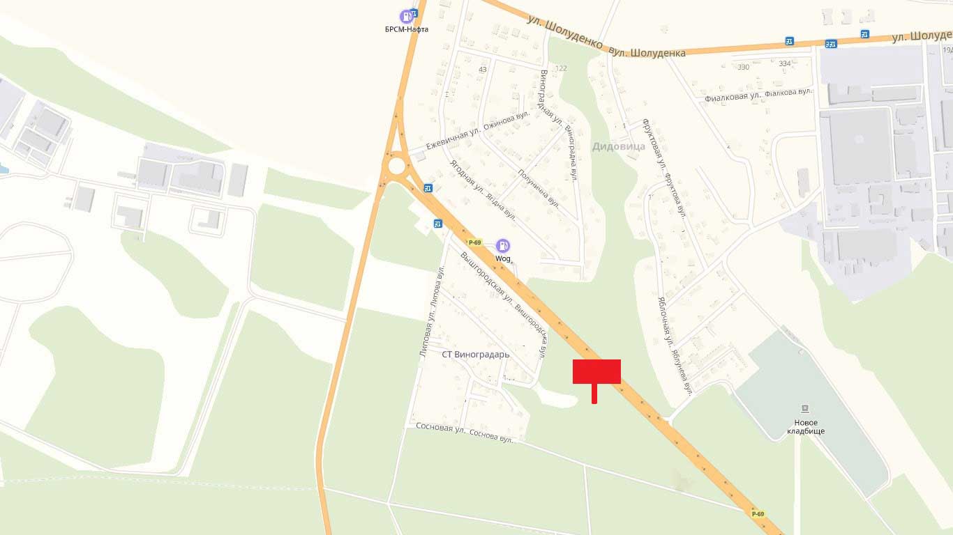 Білборд, Бігборд (Борд) A у Вишгороді м.Вишгрод, 1200 м після повороту з автомобільної дороги Р-02 "Київ-Іванків-Овруч" на автомобільну дорогу Р-69 "Київ-Вишгород-Десна-Чернігів", в напрямку вул.Богатирської, м. Київ, праворуч