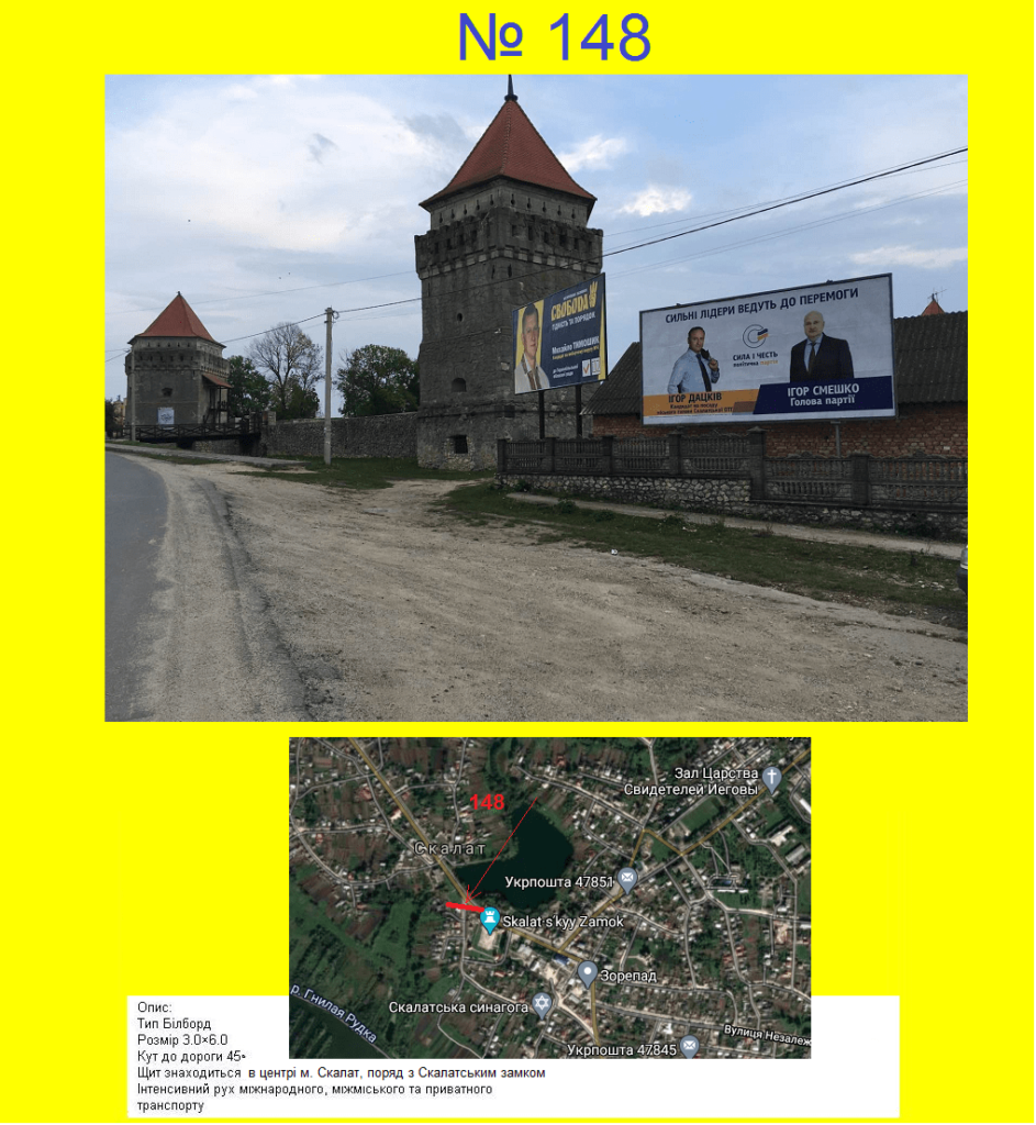 База налічує більше ніж 1052 рекламних площин у місті Чорткові.